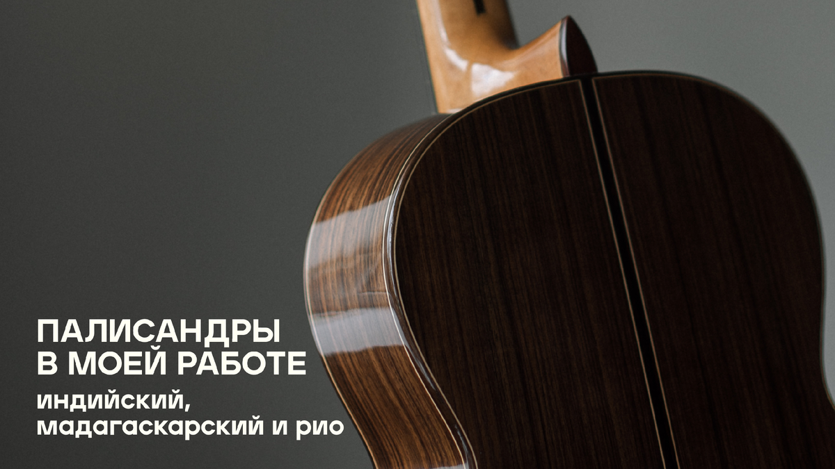 Когда мы говорим о гитаре, невозможно не коснуться темы дерева. Каждый материал — это не просто заготовка, это характер, голос инструмента. В своей мастерской я часто работаю с разными породами палисандра, и сегодня хочу поделиться своими наблюдениями: чем они отличаются и как влияют на звучание. Самый распространённый и доступный вид палисандра. Его ценят за стабильность и предсказуемость в работе. Преимущества: хорошо выдерживает перепады влажности и температуры, менее капризен в эксплуатации. Влияние на звук: даёт сбалансированный тон, ровный по диапазонам. Средние частоты звучат мягко, басы — плотные, но не избыточные. Вывод: идеальный вариант для музыкантов, которым нужна универсальная гитара — надёжная и сбалансированная. Этот вид ближе к Рио по своим свойствам, но при этом доступнее. Древесина более плотная и с ярко выраженной текстурой. Преимущества: визуально богатый, с красивыми контрастными переливами. Звучит ярче и насыщеннее индийского. Влияние на звук: добавляет ясн