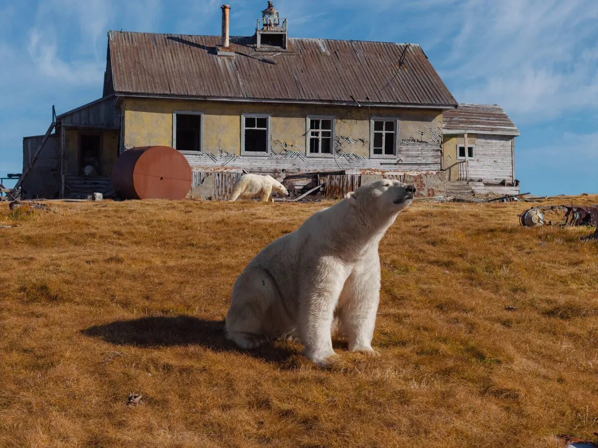 Сложно поверить, что перед нами — не ИИ, однако это видео реально. Белых медведей снял и выложил в своих соцсетях Вадим Махоров, новосибирский фотограф, видеограф и путешественник, влюбленный в Север. На острове Колючин в Чукотском море находится заброшенная полярная метеостанция, построенная в 1940-ых годах и покинутая в 1990-ых. Люди отсюда навсегда ушли, но их место заняли медведи — сегодня на острове проживает около 20 «метеорологов». В ветхих домиках они чувствуют себя как дома – ветер не дует, дождь не идет, из окон открывается отличный вид Конфликты у соседей исключены. Коротким полярным летом, когда льда уже нет, мишки заселяются в домики и проживают здесь бок о бок, совершая одиночные охотничьи вылазки к лежбищам моржей и птичьим базарам. Когда встанет лёд, косолапые покинут свои дома и разбредутся кто куда, до следующего потепления. В 2022 году серия снимков с медведями острова Колючин прославилась на весь мир и стала лауреатом премии Drone Photo Awards 2022 и абсолютным п