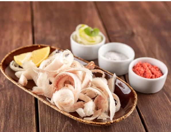 · Рыбная строганина: Из ценных пород северных рыб – нельма, муксун, чир, омуль, сиг. Это эталонный вариант.