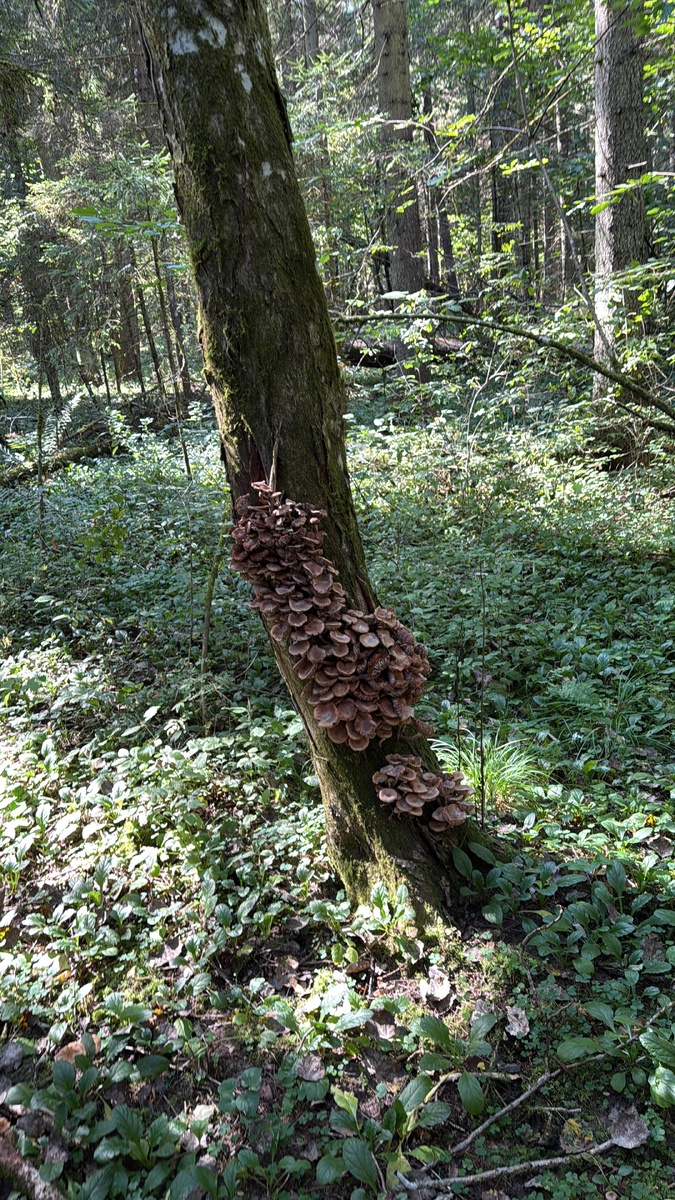 Захватили корзинки, и погнали за грибами. Опята так и кишат — глаза разбегаются! Жена кричит: «Смотрите, целое семейство!» Я ору: «А тут ещё больше!» В общем, увлеклись мы так, что не заметили, как забрели в самую чащу.