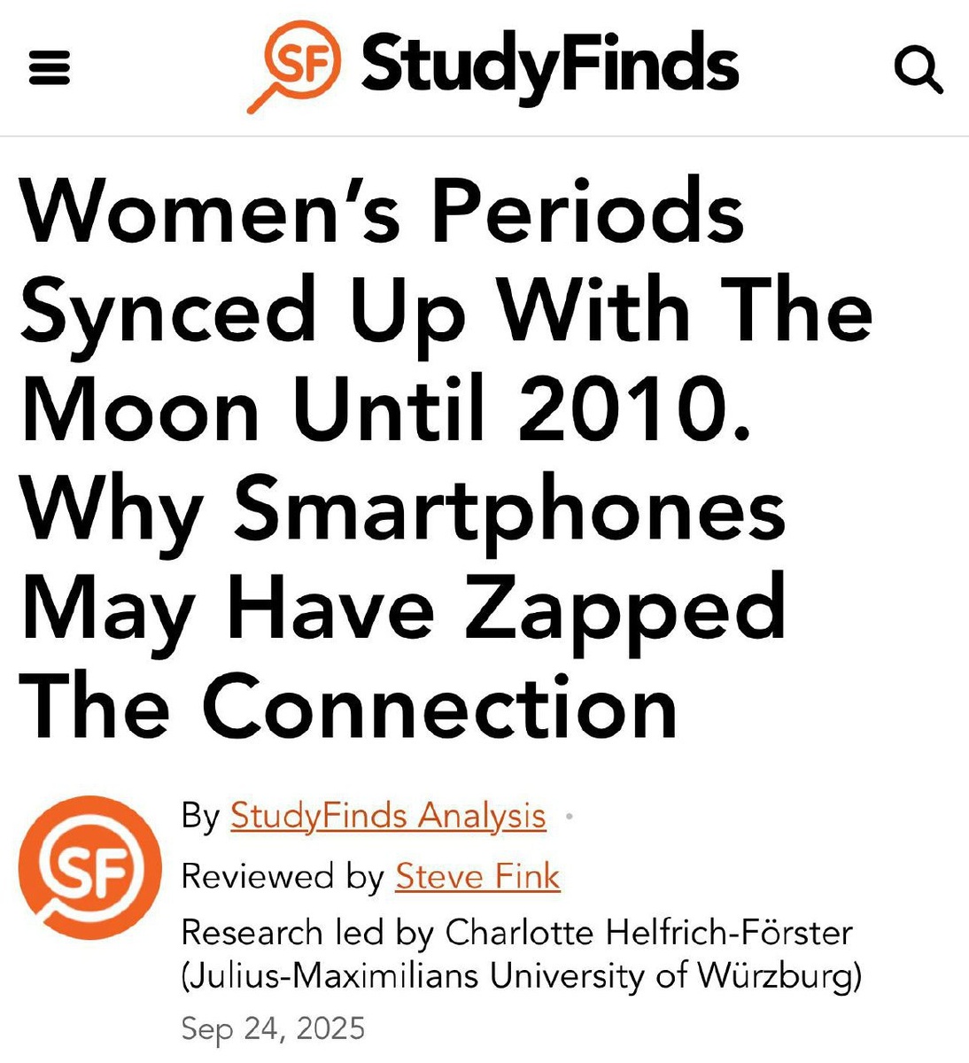 Телефоны уничтожили связь женщин с ЛУНОЙ — до 2010-го менструация чаще совпадала с лунными фазами, но после повсеместного перехода на айфоны циклы сломались. Теперь у женщин с высоким уровнем светового загрязнения свои циклы. Учёные нашли только один момент в году, когда связь возвращается — январь. Так вот оно что.... 🤨 CtrlAltDelights- подписаться