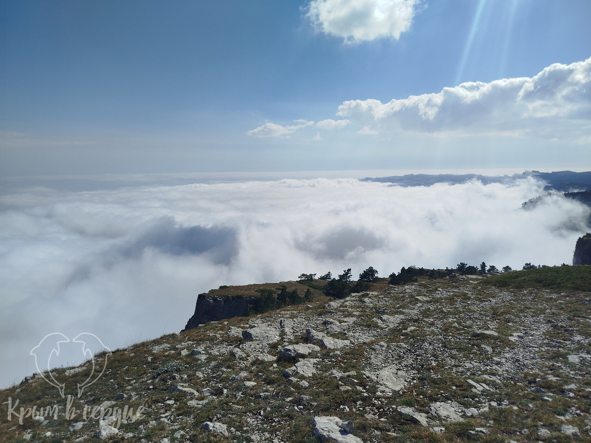 Позавчера мы собирались погулять по одному из красивейших мест полуострова - Большому каньону... Вбили в навигатор: со стороны села Соколиное дорога перекрыта полностью - ремонт. Решили ехать через Ай-Петри, как навигатор ведет ближе всего. Поднялись в село Охотничье, а там дальше на пути к каньону нас останавливает охрана и шлагбаум - тоже ремонт, кладут асфальт. Однако навигатор этого не показывает. К каньону тут тоже не проехать. (Отметила на карте крестиком, мало ли соберётесь по этому пути). Ну, а обратно спускаться вновь серпантин, бензина не так много. Решили дальше свернуть и доехать до плато Ай-Петри, чтобы не зря был весь этот подъем. Там арендовали квадроциклы. За два квадрика и час катания заплатили 9 тыс, со скидкой, что очень хорошо, я считаю. Весной мы катались на снегоходах меньше часа за 10 тыс. Маршрут каменистый, с подъемами и крутыми спусками. Конечная точка - гора, с которой должен был быть вид как раз на: Большой каньон, Кадыковский карьер (в форме сердца) и город