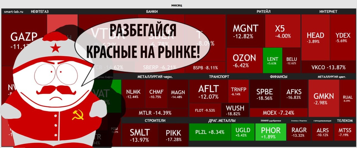 Позитив уехал, но обещал вернуться. Закончилась еще одна неделя, более того, если не считать оставшиеся сентябрьские дни, то можно сказать, что и сентябрь уже позади. Несмотря на то, что пятница была позитивной, в пятницу рынок прибавил 0,6%, неделя в целом принесла инвесторам негатив, индекс за неделю потерял 0,8%, а вот потери сентября более значительные, за сентябрь индекс просел на 5,98%. Говорить про позитив я бы не стал, позитивных новостей очень мало, на рынок влияют очень сильно геополитические факторы и факторы, происходящие в экономическом поле страны. Инвестор бежит из рискованных активов, в том числе акций, основной упор делается сегодня на банковские вклады, облигации и другие менее рискованные активы. Все поменялось таким образом, что народ несмотря на снижение ставок по депозитам не спешит забирать оттуда денежные средства, несмотря на все прогнозы полугодовой давности от экспертов о том, что при снижении ставки ЦБ народ ломанется за машинами, квартирами, колбасами,