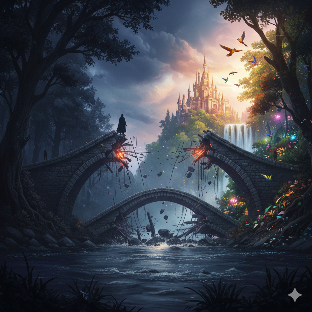 Мост — символ перехода между частями вашей жизни или сознания. Разрушение моста говорит о страхе перемен или внутреннем конфликте.