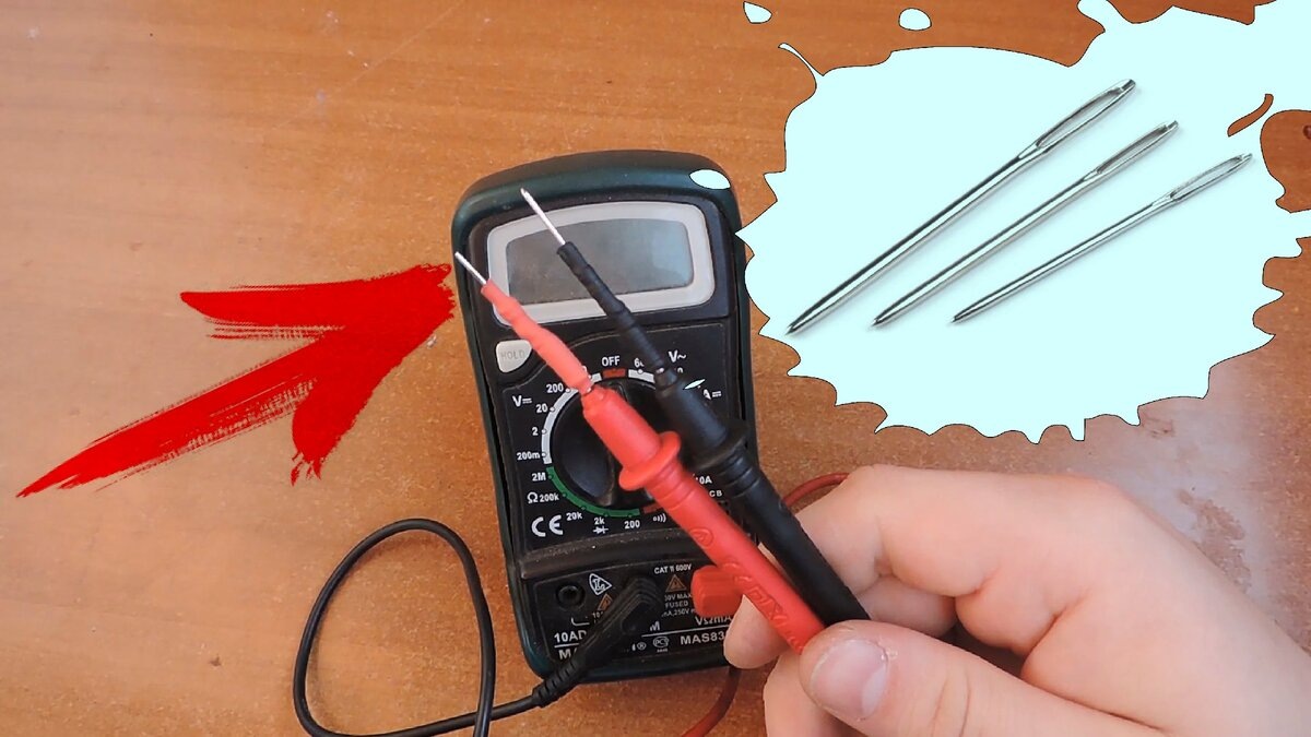 После этого необходимо будет осторожно снять намотанную проволоку с швейной иглы и родного щупа мультиметра, и аккуратно обрезать выступающие «хвостики», чтобы они не мешали нам в дальнейшем.