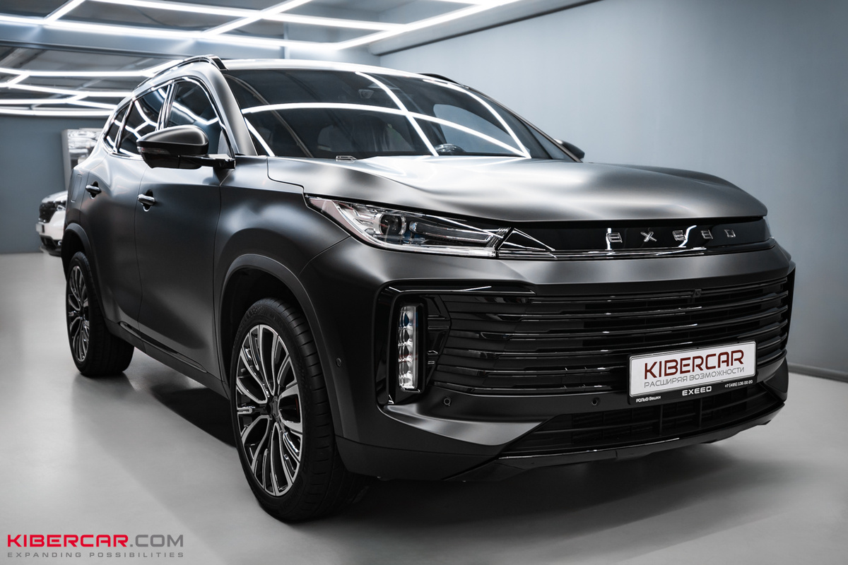 Задача: добавить уникальности в экстерьер автомобиля EXEED TXL. Решение: антихром и оклейка матовой полиуретановой пленкой. В наш детейлинг-центр приехал владелец крупного современного внедорожника EXEED TXL. Автомобиль привлекал внимание своим обновленным дизайном, но заказчик хотел придать ему более строгий и эффектный образ. Для этого мы выполнили два комплекса работ: антихром деталей экстерьера и полную оклейку кузова в матовый полиуретан. Хромированные элементы на кузове выглядели слишком ярко и не соответствовали стилю, который хотел видеть владелец. Мы применили технологию Black Shadow Chemical — современный химический метод антихрома. Детали погрузили в специальный раствор на основе хлорного железа, затем окрасили в насыщенный черный цвет и покрыли защитным лаком. Такой подход обеспечивает: Теперь рамки окон, рейлинги и другие элементы в чёрном исполнении подчеркивают брутальность внедорожника. Следующий этап — полная оклейка кузова в полиуретановую пленку с матовым эффектом. Т
