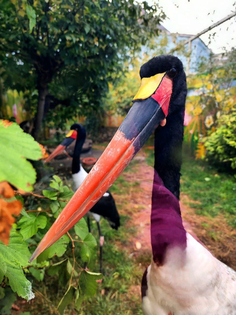 В Московском зоопарке живут самые крупные аисты в мире — седлоклювые ябиру