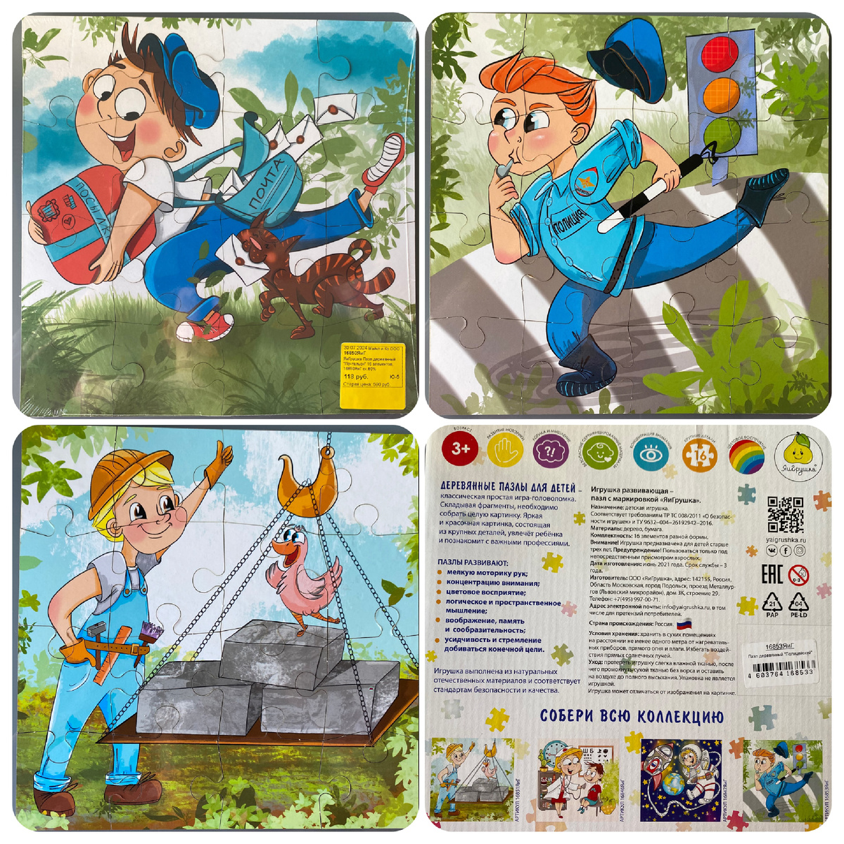 На данный момент Вере 2,4 г. Я наивно предполагала, что домашние «развивашки» с появлением в нашей жизни детского сада сократятся, но нет, наоборот… Наш график похода в сад (неделя через неделю) и сокращение количества прогулок (всё-таки лечимся сидим) погрузили нас с головой в мир настолок, конструкторов и пазлов. На сегодняшний день среди наших фаворитов остаются пазлы. Моя лучшая находка за последнее время, да ещё и по такой привлекательной цене. Это деревянные пазлы из 16 элементов от уже полюбившейся нам «ЯиГрушка». Проблема только в том, что я купила все имеющиеся в магазине, а Вера просит ещё тётю и ракету. Где они этому учатся?)) Собираем, изучаем профессии, новые слова, развиваем моторику, внимание, логическое мышление и усидчивость. Детали очень крупные, удобные для детской руки. Вера часто подбирает пазлы по совпадению замочков (как в нижнем ряду на фото), но потом сама оценивает несоответствие картинки и просит помощи. Суть игры заключается в том, чтобы малыш подобрал