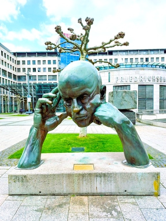 В самом сердце Штутгарта, там, где деловая суета переплетается с туристическим шумом и студенческим смехом, есть особенное место. Здесь, среди городской круговерти, стоит скульптура, которая будто умеет останавливать время. Она называется "Denkpartner" - "Партнёр по размышлениям", созданная швейцарским мастером Гансом Лимбахом. Со временем эта работа стала не просто элементом городского пейзажа - в ней чувствуется душа города.