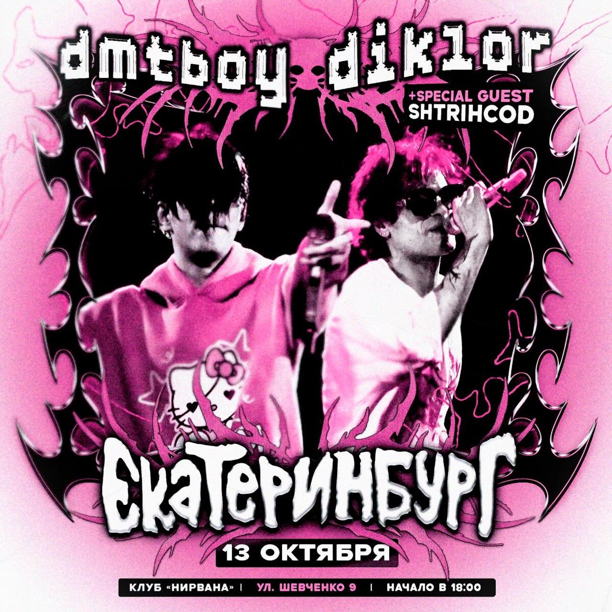 🎫 – dmtboy & diklor: концерт в Екатеринбурге 🎤 – dmtboy, diklor + специальный гость SHTRIHCOD 📍 – «Нирвана», Екатеринбург, Шевченко ул. д. 9 🗓 – 13 октября 💵 – от 500 руб. 🔗 – билеты (16+) #концерт #dmtboy #diklor #shtrihcod #екатеринбург #нирванаclub 👉 Список концертов: сентябрь • октябрь • ноябрь • декабрь @mainstreamusic