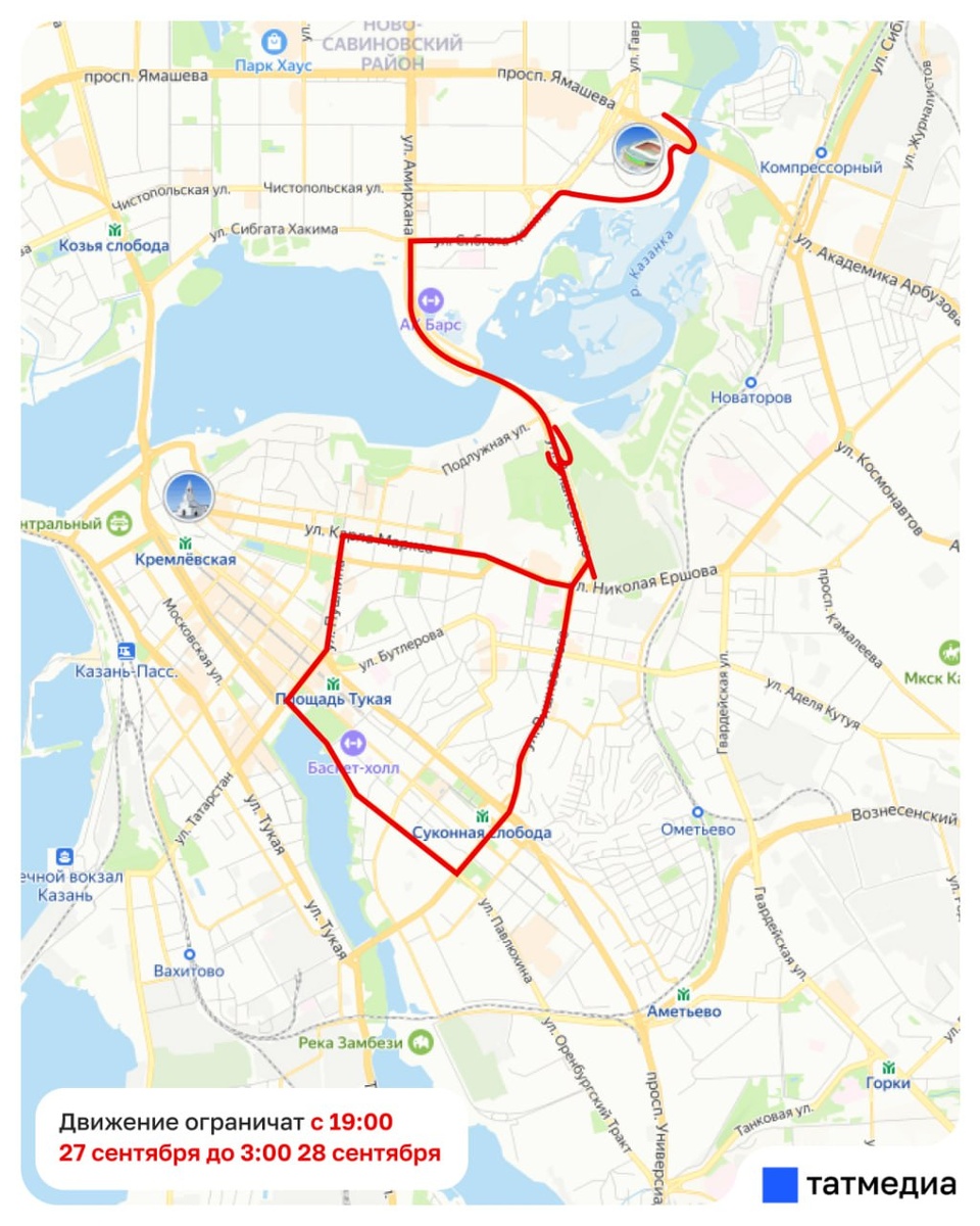 🚲🌝 Друзья, напоминаем, что сегодня в Казани ограничат движение на центральных улицах