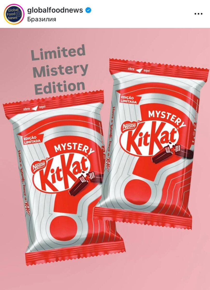 Ооо, KitKat в Бразилии выкатил мистери-упаковки с секретным вкусом. Это лимитка, поэтому попробовать сможет далеко не каждый.