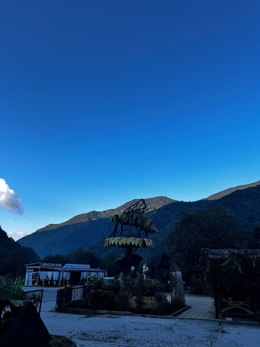 Наш автобус двигался дальше, везя 40 замученных ночной дорогой туристов и двух гидов. Ехали всю ночь, преодолев страшенные серпантины и русско-абхазскую границу, где одну из наших туристок задержали, так как у неё была грузинская фамилия. (О конфликте между Грузией и Абхазией, случившемся в 1992-м, напишу отдельно, тема серьёзная). Один из наших экскурсоводов — абхазец, присоединившийся к нам на границе, — болтал без умолку, рассказывая обо всём вокруг. Голос бархатный, заслушаешься! Он уже успел затащить нас на медовую ферму, где всем заботливо «впарили» медовуху, чачу, мёд в глиняных горшочках и продукты жизнедеятельности пчёл. Обессиленные только начавшимся отдыхом, туристы не возражали и покорно дегустировали всё, что было предложено: сладкое и алкоголь. Немного взбодрившись последним, изучаем по пути первую достопримечательность. Каньон «Каменный мешок» — восхищает, пугает и поражает одновременно! Сейчас останавливаться тут нельзя — после случаев с обвалами камней на дорогу.