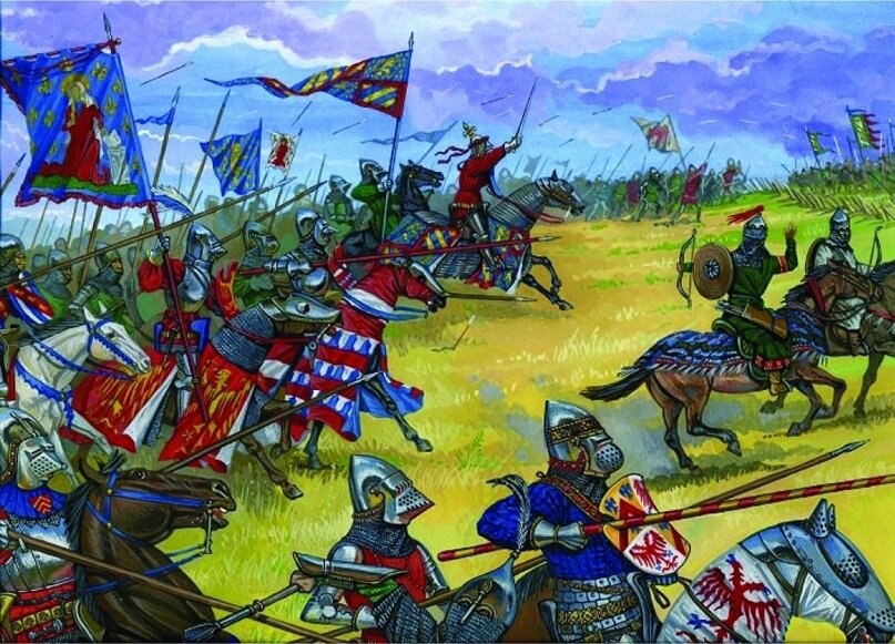 Ремарка. Существует мнение многих военных историков, что если бы руководители крестоносцев прислушались к мнению Сигизмунда, катастрофы удалось бы избежать. Но стоит напомнить эпизод из нашей истории — битву на Калке, когда тяжёлая монгольская конница Субэдэя опрокинула половцев, те побежали и смешали строй русских дружин. К чему это привело — знают все. Так что вопрос с построением спорный.