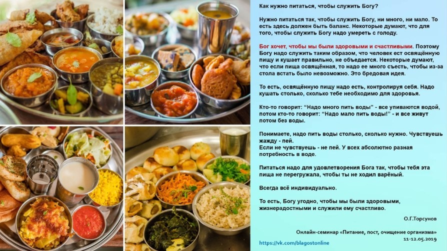 Нужно питаться так, чтобы служить Богу, ни много, ни мало. То есть здесь должен быть баланс. Некоторые думают, что для того, чтобы служить Богу надо умереть с голоду.