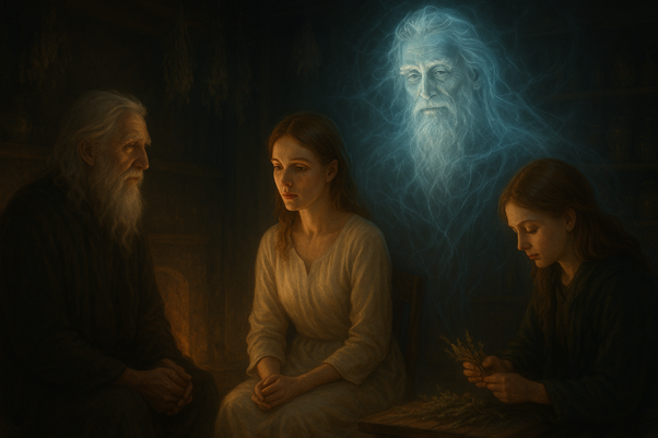 Я отложила записи и пересела ближе к столу с травами. Взяла свежий подорожник и принялась скручивать в ладонях каждый листик для ферментации, будто вплетая в них своё дыхание. Дева, сидевшая напротив, уже выглядела совсем иначе: тело её было спокойно, взгляд мягче. Она попила тёплый чай со зверобоем и на мгновение замолчала, словно переваривала то, что только что открыл для неё Ай об энергиях Инь и Ян. Та острая боль, с которой она пришла, и вовсе растворилась.