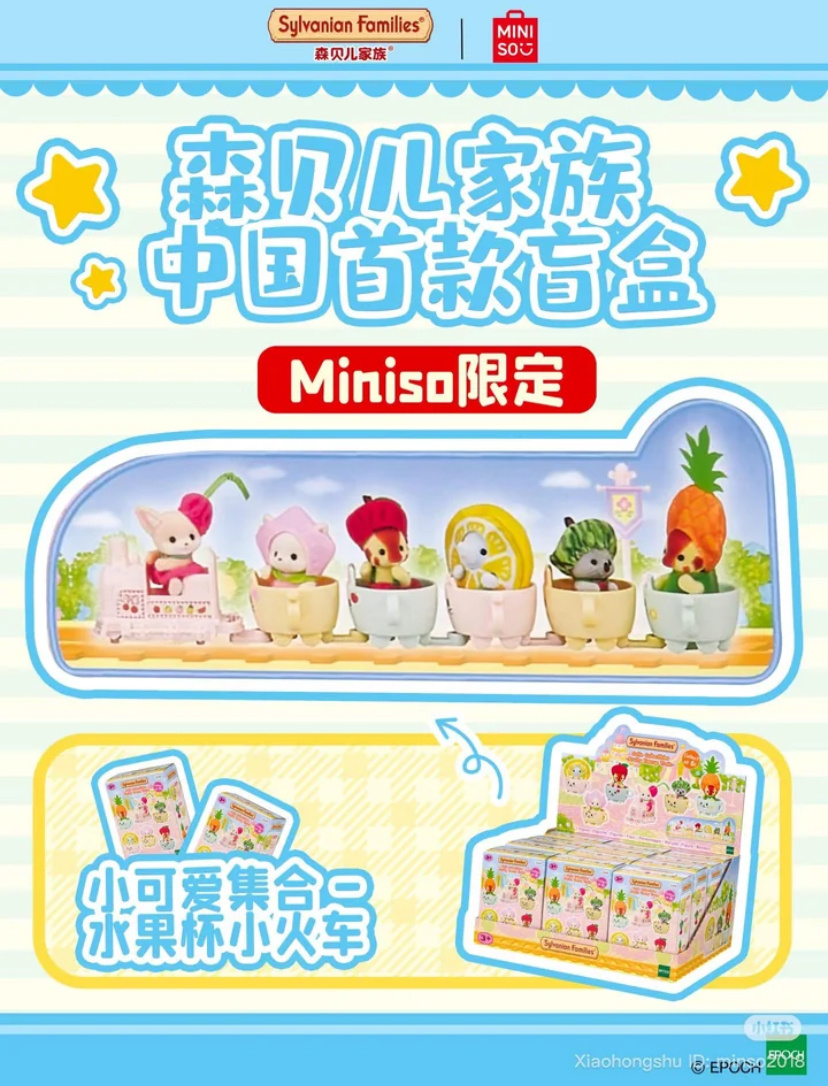 Похоже, Epoch вдохновились тайными коробочками настолько сильно, что теперь они будут выпускаться на постоянной основе. Итак, очередная новинка выходит в … нет, не в Японии! На этот раз эксклюзивом порадовали любителей Сильвании в Китае. Новинка будет продаваться в крупнейшей китайской сети магазинов Miniso. Правда, магазины Miniso теперь есть и в других странах, так что, вероятно, набор можно назвать эксклюзивным лишь условно. Уверена, что он быстро появится и на наших маркетплейсах в качестве товара, который можно заказать из Китая. Новинка под названием Fruity Teacup Train (фруктово-чайный поезд) может быть названа таковой с большой натяжкой. По сути, «новинка» - микс тайных пакетиков с малышами в костюмах фруктов и японской августовской лотереи 2024. В лотерею можно было выиграть машинки-чашки, которые сцеплялись между собой как паровозик. Пять из них задействовали в китайском эксклюзиве. Новым кажется лишь паровозик с фенеком. Но, возможно, и он встречался ранее? Я не смогла