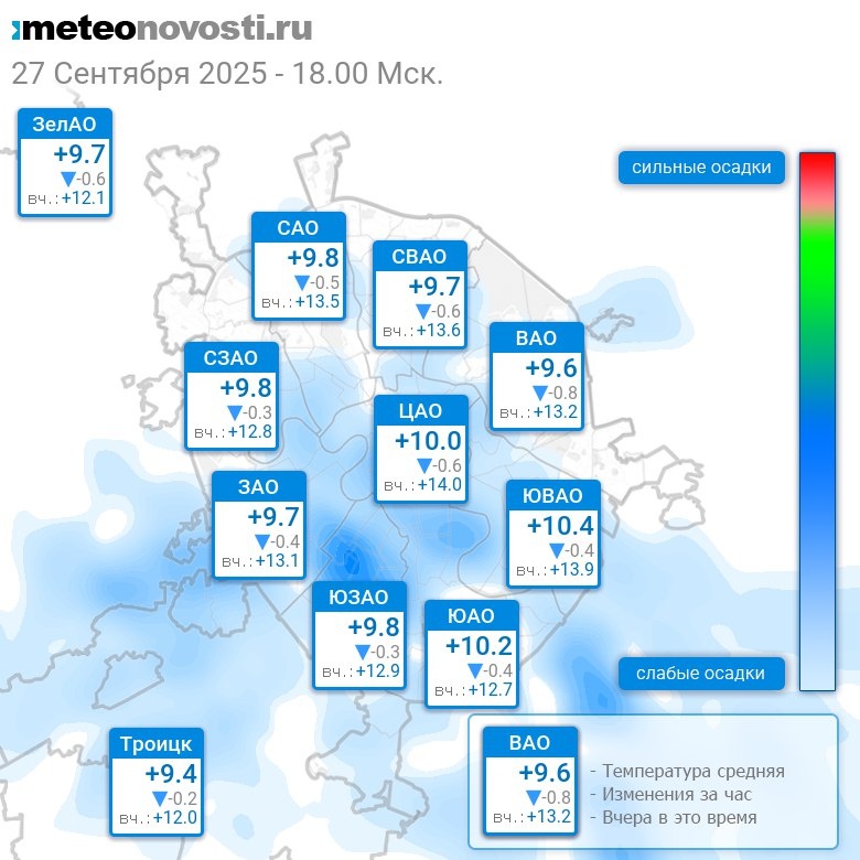 В 18:00 в Москве было от +9.1°C до +10.6°C, средняя температура +9.9°C #погода #Москва #осень #температура #27сентября #суббота
