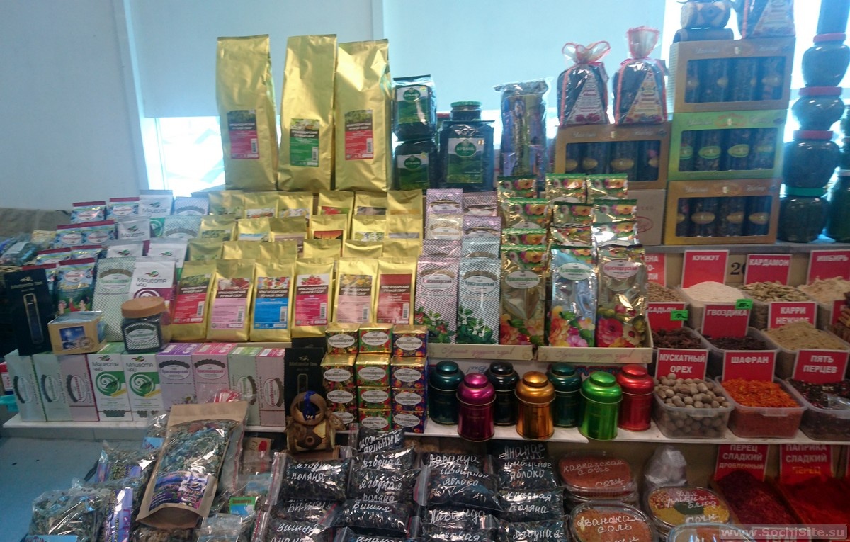 Сегодня поговорим о сувенирах, которые можно привезти из Сочи. К сожалению, Сочи точно не является городом с каким-нибудь известным ремеслом, поэтому опираться будем на популярные продукты местного производства. Одни из самых северных в мире чайных плантаций располагаются неподалеку от города Сочи, где чай собирается и упаковывается. На плантацию чая "Мацеста" возят неплохие обзорные экскурсии с чаепитием. В зависимости от вкусовых предпочтений можно отыскать и чай с добавлением кусочков фруктов, местных трав и цветов. Местный бренд "Краснополянский" специализируется как раз на таких напитках. Развалы с большими мешками типа "10 трав" и "сбор горных трав" — это как раз он. Чурчхела - десерт из нанизанных на нитку орехов и выпаренного сока. Самый популярный вариант - грецкие орехи и смесь виноградного и гранатового сока. Довести чурчхелу в целости на самолете проблемы не составит. Если едете на поезде или машине больше нескольких часов придется заморочится с термопакетами и аккумулято