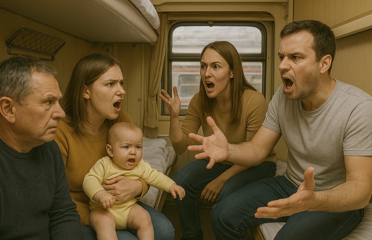 Чем дальше шёл поезд, тем больше накапливалось раздражения. Ребёнок то кричал, то смеялся во весь голос, а родители устраивали вокруг себя целый лагерь: раскладывали пелёнки прямо на общем столике, ставили бутылочки с питанием на подлокотники соседей, громко обсуждали между собой, кто и что «должен терпеть».