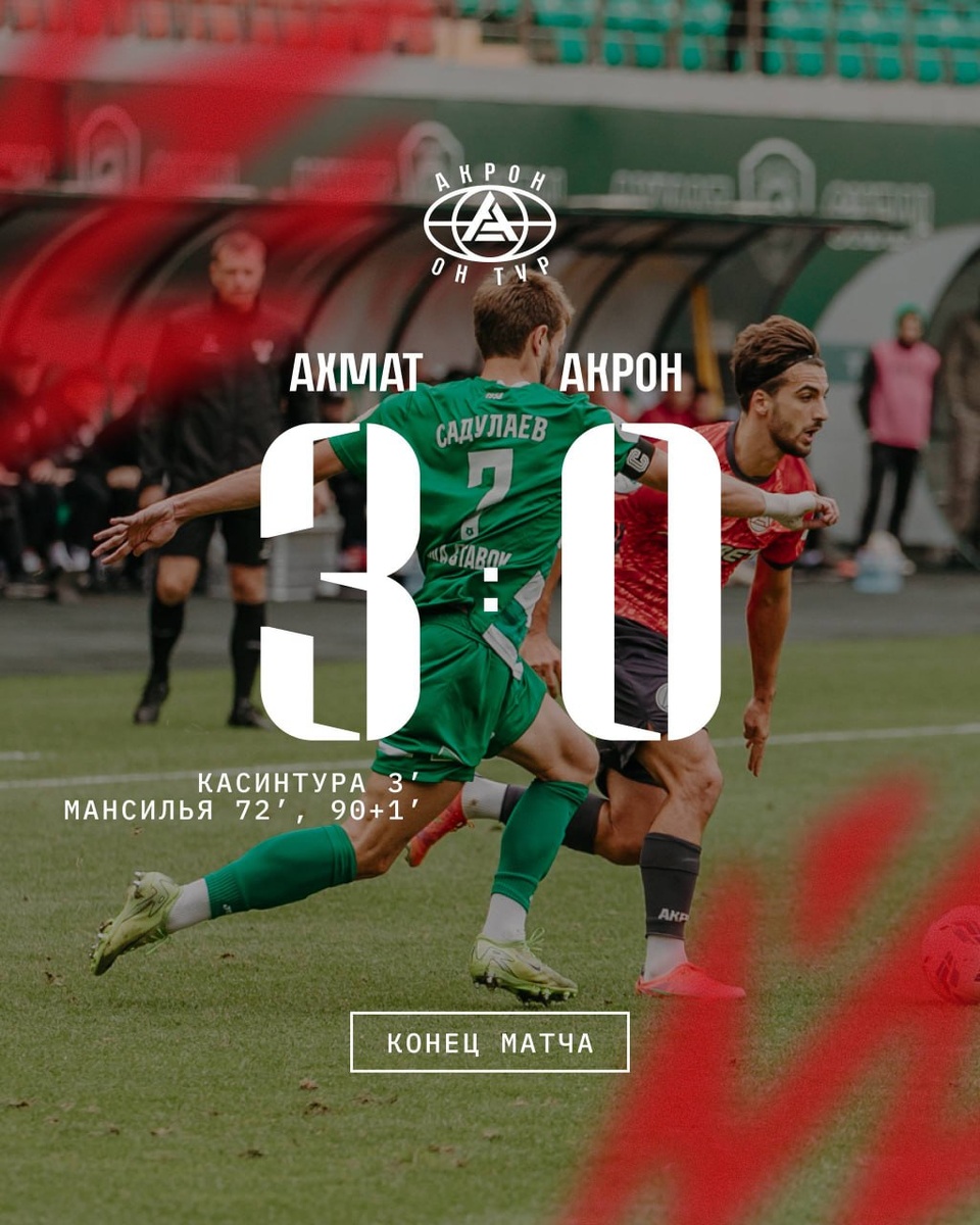 ⚽️В матче десятого тура Российской Премьер-Лиги грозненский клуб «Ахмат» одержал победу над тольяттинской командой «Акрон» на своем поле