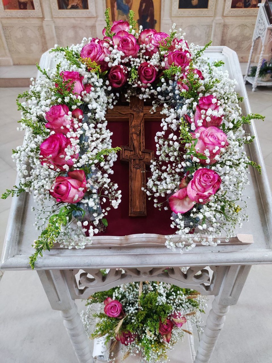 Поздравляю всех с праздником Воздвижения Честного и Животворящего Креста Господня 🙏🌺 Тропарь, глас 1 Спаси́, Го́споди, лю́ди Твоя́/ и благослови́ достоя́ние Твое́,/ побе́ды на сопроти́вныя да́руя// и Твое́ сохраня́я Кресто́м Твои́м жи́тельство. Перевод: Спаси, Господи, людей Твоих и благослови всё, что принадлежит Тебе. Даруй победы над врагами, и сохрани силою Креста Твоего тех, среди которых пребываешь Ты. Кондак, глас 4 Вознесы́йся на Крест во́лею,/ тезоимени́тому Твоему́ но́вому жи́тельству/ щедро́ты Твоя́ да́руй, Христе́ Бо́же,/ возвесели́ нас си́лою Твое́ю,/ побе́ды дая́ нам на сопоста́ты,/ посо́бие иму́щим Твое́ ору́жие ми́ра,// непобеди́мую побе́ду. Перевод: Вознесенный на Крест добровольно, соименному Тебе новому народу милости Твои даруй, Христе Боже; возвесели силою Твоею верных людей Твоих, подавая им победы над врагами, – да имеют они помощь от Тебя, оружие мира, непобедимый знак победы. Величание Велича́ем Тя,/ Живода́вче Христе́,/ и чтим Крест Твой святы́й,/ и