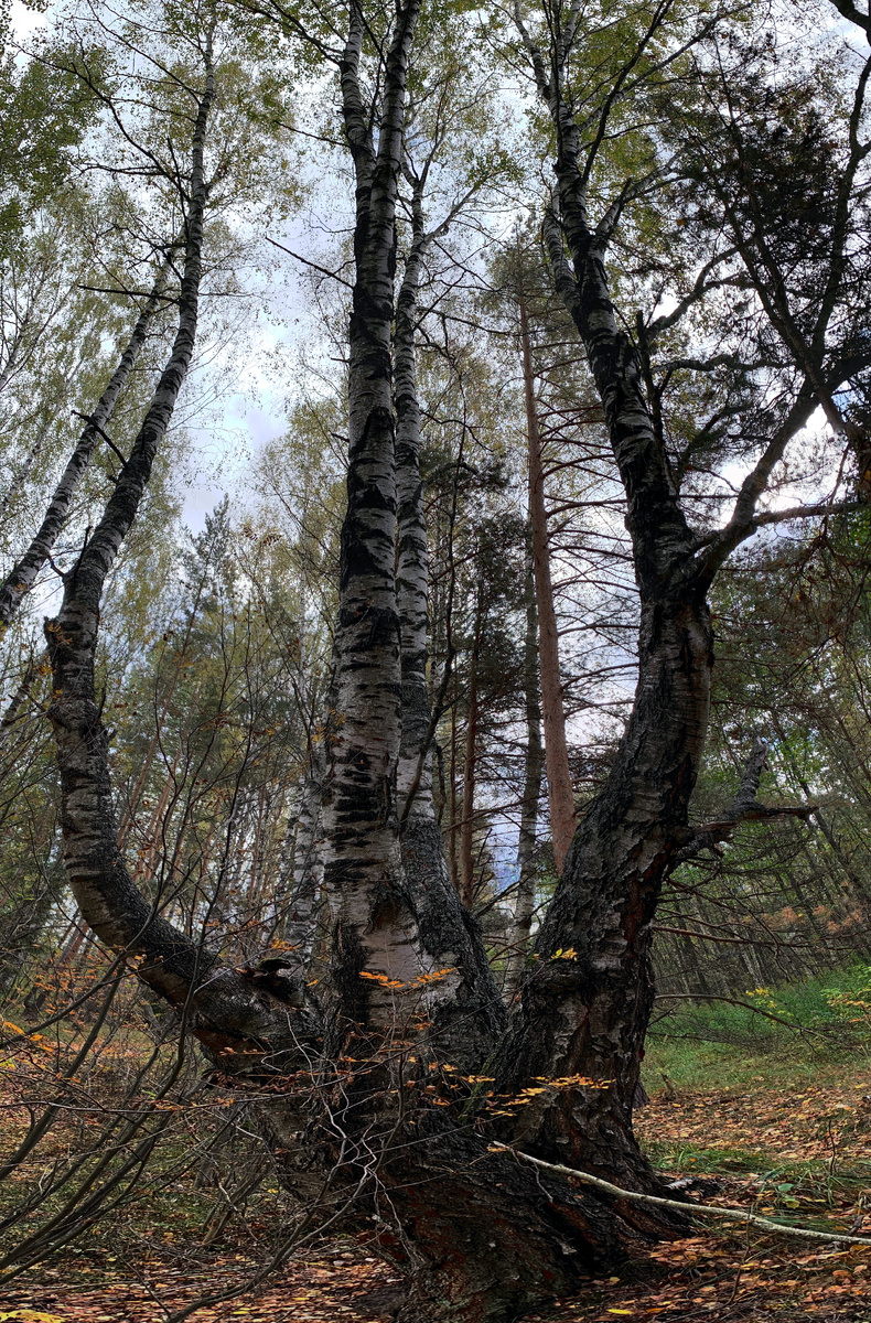 Был недавно в походе, посчастливилось увидеть классную и неожиданно привлекательной формы березу. Да, ранее я видел большие березы, с крупными стволами, высокие. А здесь, как бы все сразу в ней объединилось. К тому же, из одно места сразу целых четыре ствола растут, а внутри - как чаша, даже можно слегка все оборудовать и место для ночлега получится. Как мог, сделал панораму, и смотреть лучше данную фотку с ПК на большом мониторе. Пусть и здесь это будет для истории. Как говорится, вдохновился. Кстати, а буквально рядом с этим место было много лисьих нор. Старых нор, но главное - они есть. Вообще, каждый раз удивляюсь: вроде и хожу почти по одним и тем де местам, слегка меняя тропы и направления, а все новое и новое удается увидеть. Пока удается все это дело впитывать, как губка, чтобы после излагать на страницах блога. А вдруг, кому-то и для кого-то это нужно (ну кроме меня, естественно). Добра почти всем. Другие мои публикации: Великий пень и шар в лесу О клещах В какую сторону Вас