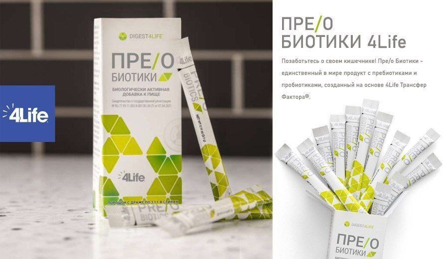 Пре/о Биотики - единственный в мире продукт с пребиотиками и пробиотиками, созданный на основе 4Life Трансфер Фактора. В состав этой запатентованной смеси, прошедшей университетские испытания, входят пять штаммов высокоизученных прОбиотиков, которые увеличивают полезную «дружественную» микрофлору в кишечнике, и три вида прЕбиотиков, оптимизирующих рост полезных пробиотиков. Эксклюзивная технология микрошариков доставляет пробиотики непосредственно в толстую кишку, что позволяет Пре/о Биотики увеличить количество и продолжительность жизни полезной микрофлоры кишечника в 1000 раз по сравнению со стандартной формой выпуска аналогичных продуктов. Кроме того, включение эксклюзивной формулы 4Life Трай-Фактор Формула стимулирует рост пробиотиков, содержащихся в Пре/о Биотики, на 868%! Пре/о Биотики также помогает укрепить иммунную систему, особенно если учесть, что большая часть иммунной системы находится в кишечнике! Для достижения оптимальных результатов принимайте по одному стику