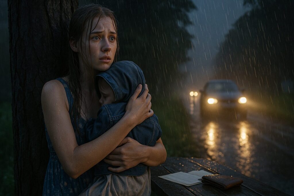 Не раздумывая ни секунды, Артём вышел из автомобиля и поспешил к той самой сосне, под которой пыталась укрыться девушка. Когда он подошел ближе, то глазам своим не поверил. Незнакомка держала в руках вовсе не дорожную сумку, а ребенка — малыша, которому, судя по всему, едва исполнился год. Он был примерно ровесником близнецов.