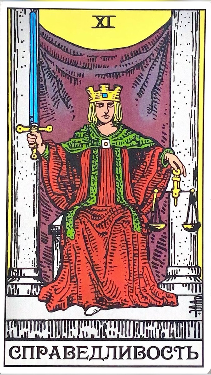 Здравствуйте! Продолжаем наше исследование Старших Арканов. Сегодня в центре внимания — Аркан Правосудие (Justice). Хотя его часто называют "Справедливость", я предпочитаю термин Правосудие (Justice), поскольку он точнее отражает суть карты: юстиция — это все, что связано с судебными делами, законом и системой договоренностей. Суть карты: Договоры и Нравственное Начало Артур Уэйт, автор колоды, подчеркивал, что эта карта следует традиционной символике и заключает в себе нравственное начало, воздающее каждому по его заслугам. Колонны, между которыми восседает фигура Правосудия, открывают путь не во внутренний мир (как у Верховной Жрицы), а в мир человеческих договоренностей и законов. Правосудие — это система договоренностей, некое задокументированное соглашение. Карта говорит о том, что даже если договоренность была несправедливой, вы обязаны ее соблюсти. Аркан Правосудия астрологически соответствует Седьмому Дому и знаку Весов. Весы тонко чувствуют гармонию, красоту и баланс; они стре