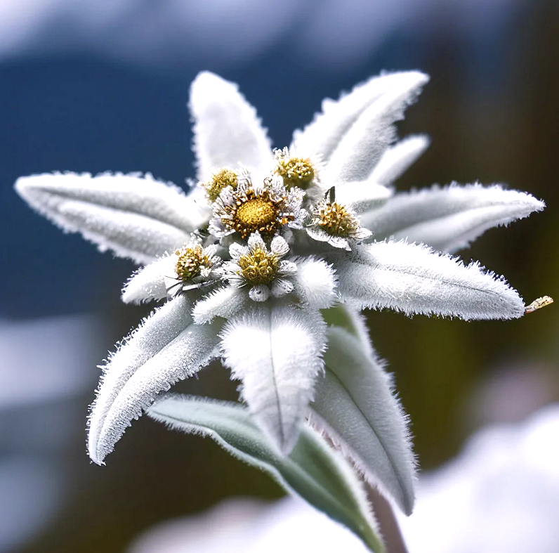 Эдельвейс – это символ альпийских гор, растение с богатой историей и множеством мифов. Описание: Внешний вид: Небольшое многолетнее травянистое растение, обычно высотой от 3 до 20 см. Листья: Узкие, ланцетные, покрыты белыми или серебристыми волосками. Цветки: На самом деле, то, что мы обычно видим как "цветы" эдельвейса, - это соцветие, состоящее из нескольких мелких желтоватых цветков, окруженных белыми или серебристыми прицветными листьями, которые образуют характерную звездообразную форму. Белые ворсинки защищают растение от холода и ультрафиолета. Произрастание: Эдельвейс растет в высокогорных районах Европы (Альпы, Карпаты, Пиренеи), а также в некоторых частях Азии. Предпочитает каменистые склоны и известняковые почвы. Свойства и применение (традиционное и научное): Эдельвейс ценится не только за красоту, но и за свои потенциальные полезные свойства: Антиоксидантные свойства: Экстракты эдельвейса содержат лейкоденины, которые являются мощными антиоксидантами. Это помогает защищат