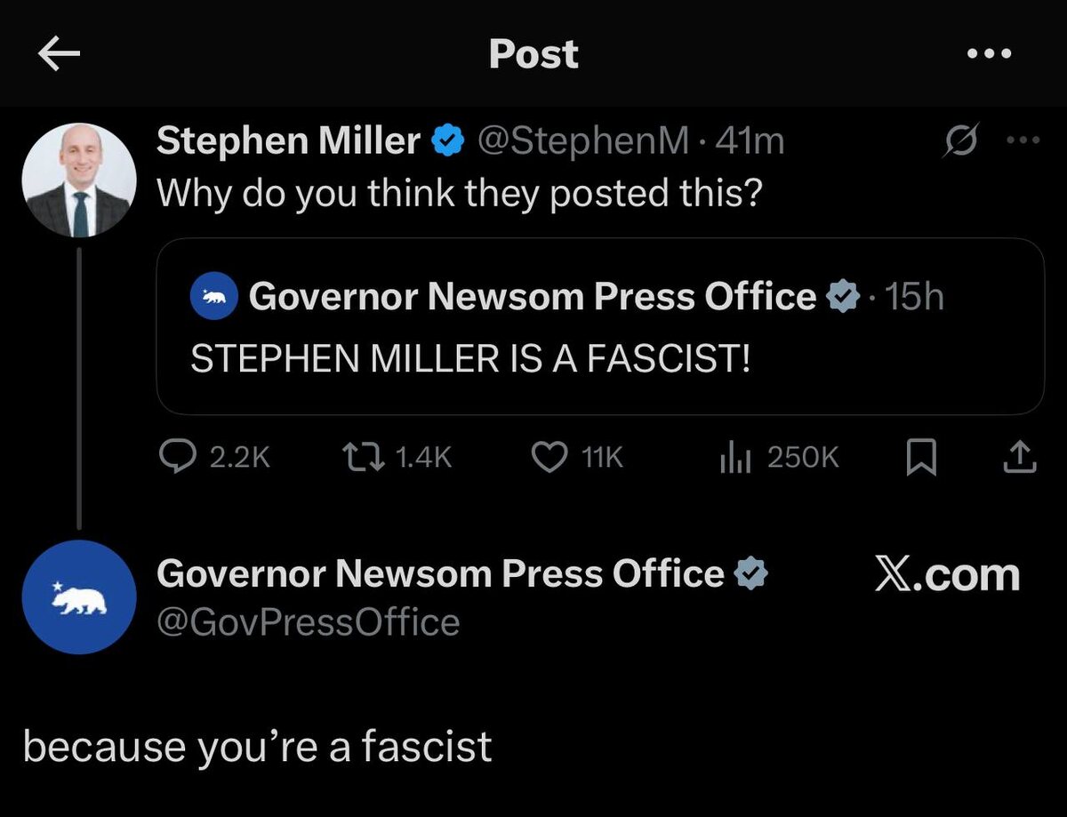 'STEPHEN MILLER IS A FASCIST!' — Gavin Newsom's Press Office