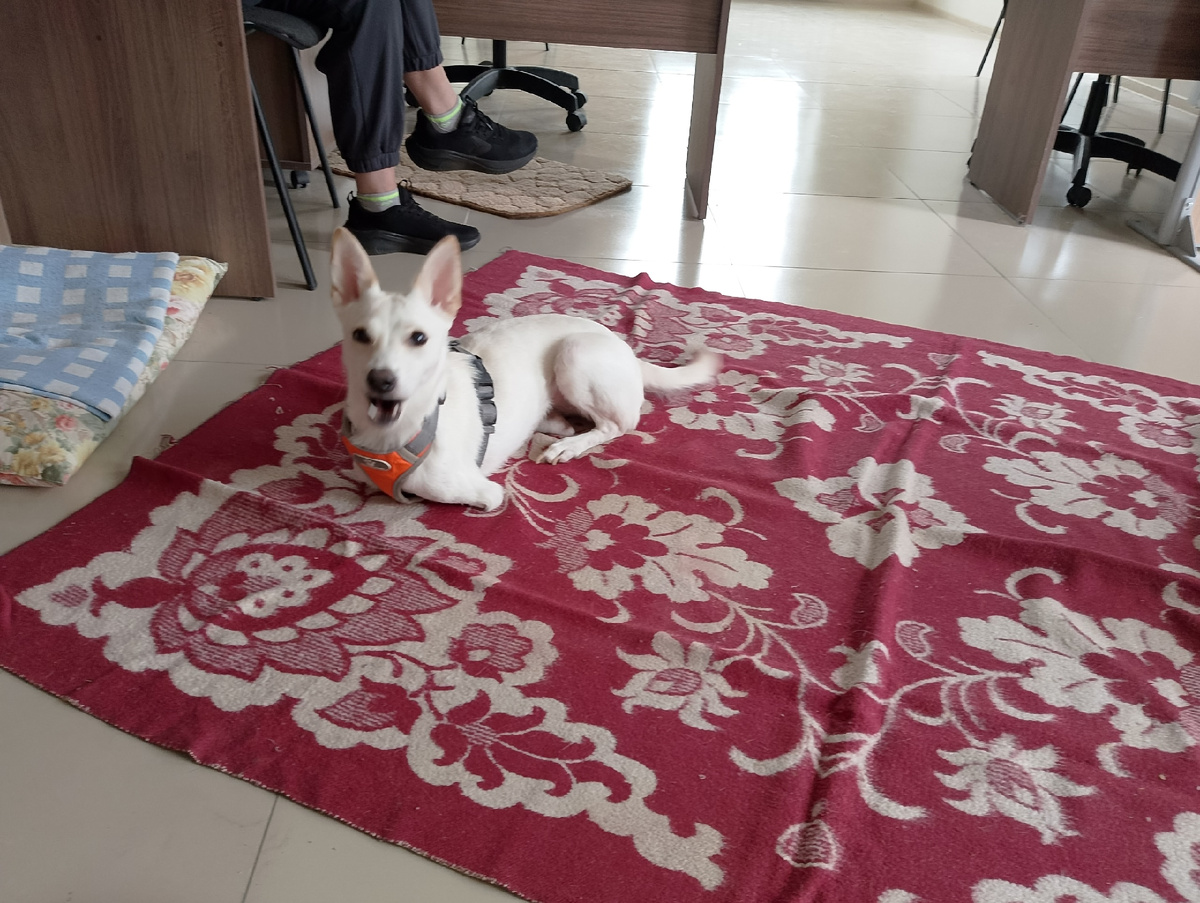 Не так давно эта прелестная собака жила с солдатами и, как могла, поддерживала их. Но в один миг всё изменилось. Белка подорвалась на мине. Она спасла своих товарищей, но получила тяжёлые травмы. Капитан принял решение спасти Белку и на мотоцикле помчался в ближайший населённый пункт. Не самое простое лечение, восстановление, адаптация. Белка живёт на передержке уже год, и практически полностью приспособилась ходить на травмированных лапках (вернее - том, что от них осталось). Сегодня Белка приехала на акцию по сбору гуманитарной помощи. И больше всего в этой собаке в очередной раз поразило её жизнелюбие. Освоившись на новом месте, Белка отправилась знакомится с Филей и Кнопой. Гостей акции она тоже не оставила без внимания: к каждому подходила, давала себя погладить и аккуратно облизывала руки: "Спасибо тебе, ЧЕЛОВЕК!" Все понимают, что шансов найти семью у этой собаки нет. Тем не менее оптимизм и жизнелюбие, переполняющие это маленькое чудо, вселяют в нас веру только в лучшее!