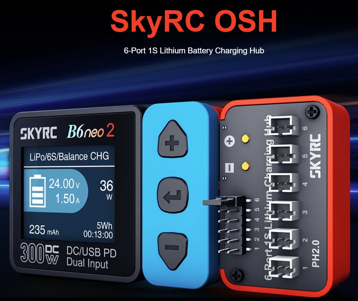 Новинка SkyRC: Адаптер OSH 6 портов для литиевых аккумуляторов 1S (BT2.0/PH2.0)