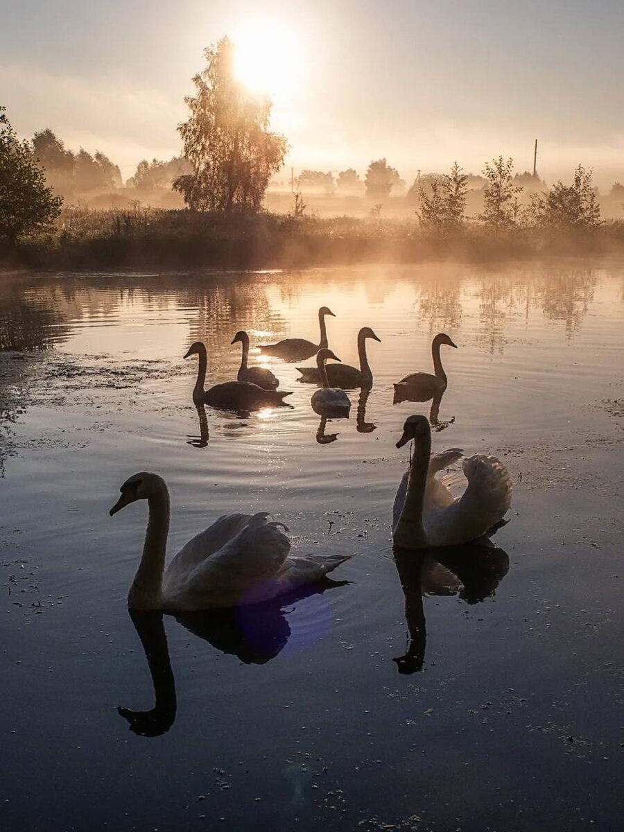 Очарование тёплого вечера на природе. Прекрасная пернатая семья. 🦢 Фото Максима Смоляка