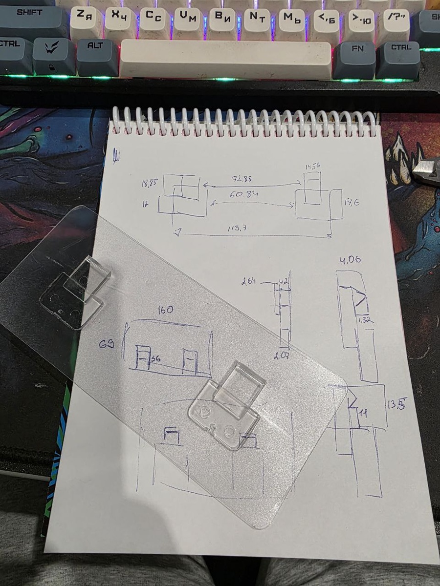 Далее уже сообразив что в липучке есть еще держалки. которые нормально не садятся немного переделал переходник, чтобы все ложилось как надо и замочки срабатывали как положено, не выгибая элементы. После первой попытки "присрать" полку к плитке, обнаружилось что без поддержек полка просто вываливается. Было решено сделать верхние упоры, чтобы полка держалась мертво в переходнике. По итогу:
