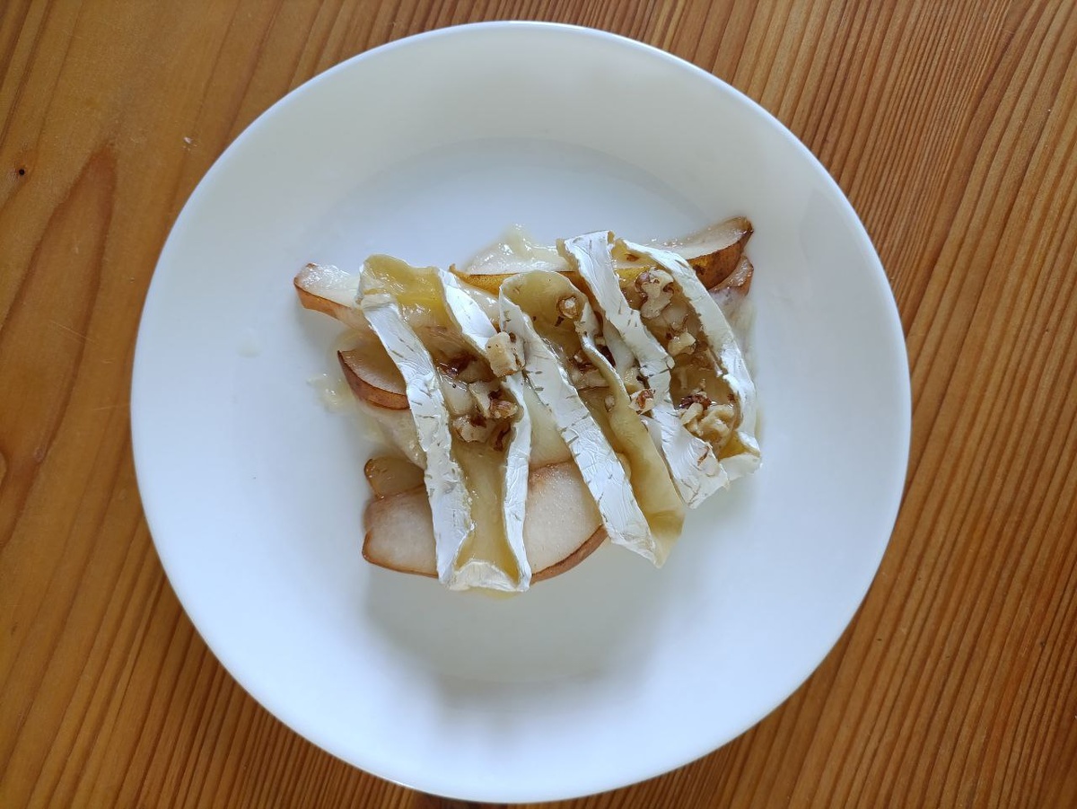 Груша , запеченная с сыром бри, с мёдом и грецким орехом
