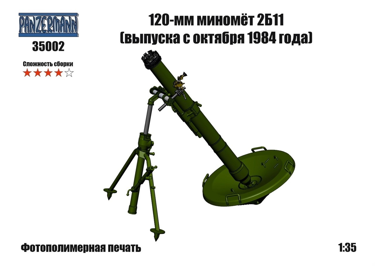 Волгоградская Panzermann с сентября выпускает из фотополимерной смолы (sla-печать) модель 120-мм миномета 2Б11 выпуска после октября 1984 года в масштабе 1/35.