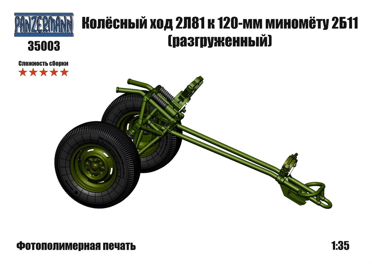 Волгоградская Panzermann с сентября выпускает на 3D-принтере (sla-печать) колесный ход (разгруженный) к 120-мм миномету 2Б11 в масштабе 1/35.