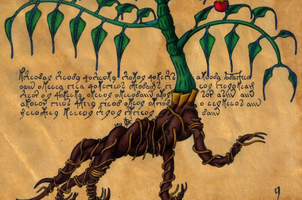 Вот только ни одно из этих растений не существует в природе. Иногда это гибриды: корни одного растения, листья другого, цветы третьего. Авторская фантазия? Или зашифрованное знание, понятное только своим?