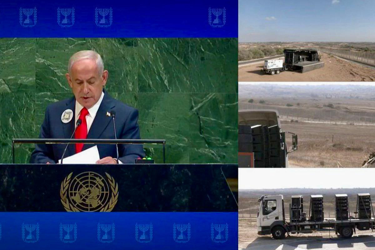 премьер?министра Израиля Биньямина Нетаньяху на Генассамблее ООН сопровождалось трансляцией на израильско?газской границе: через стационарные громкоговорители в прямом эфире прозвучало обращение