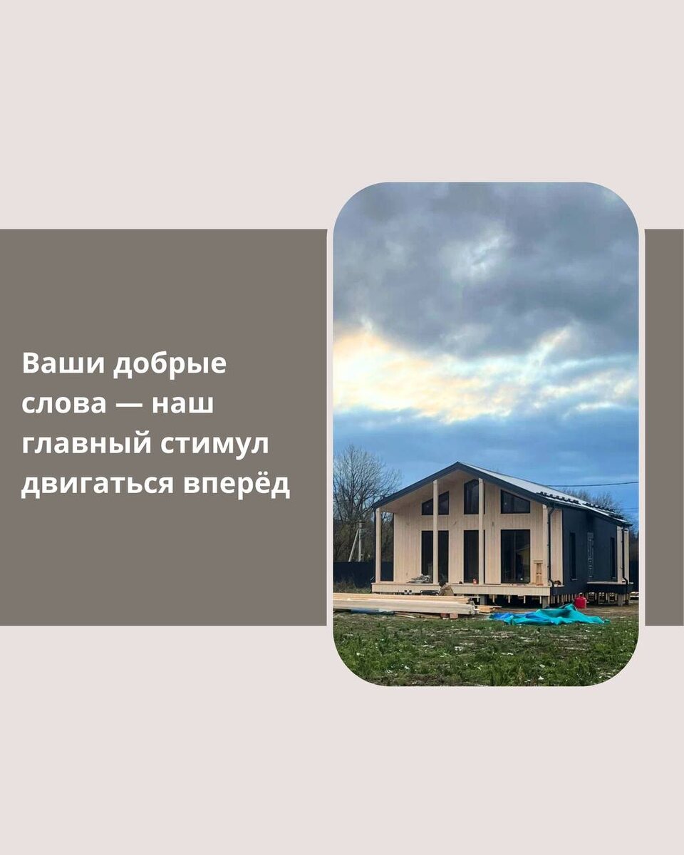 Каждая история строительства — особенная, и мы рады делиться ими с вами. Переходите по ссылке, чтобы увидеть видеоотзывы или заглядывайте на Яндекс.Карты, чтобы прочитать впечатления наших заказчиков. А тем, кто уже живёт в доме от нашей компании, будем безмерно благодарны за пару тёплых слов о нашей работе 💚
