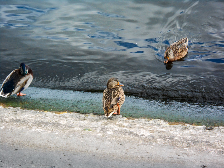 Чувствуется, что пропитания уткам вполне хватает. Погода для них стоит комфортная, улетать красавцы и красавицы в теплые края пока не собираются.