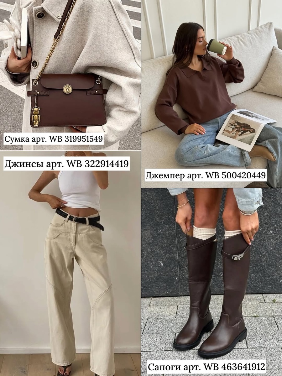 Два комплекта на базе вещей с Вайлдберриз — это рабочая мини-капсула для осени и зимы: один — расслабленный и дневной, второй — сдержанно-элегантный. В каждом образе есть опорные элементы (сумка и обувь), которые задают качество и тон, и мягкие партнёры (джемпер и низ), отвечающие за настроение. Соберите образы по артикулам, подстройте посадку под себя — и у вас появятся универсальные решения на каждый день, в которых тепло, удобно и очень стильно.