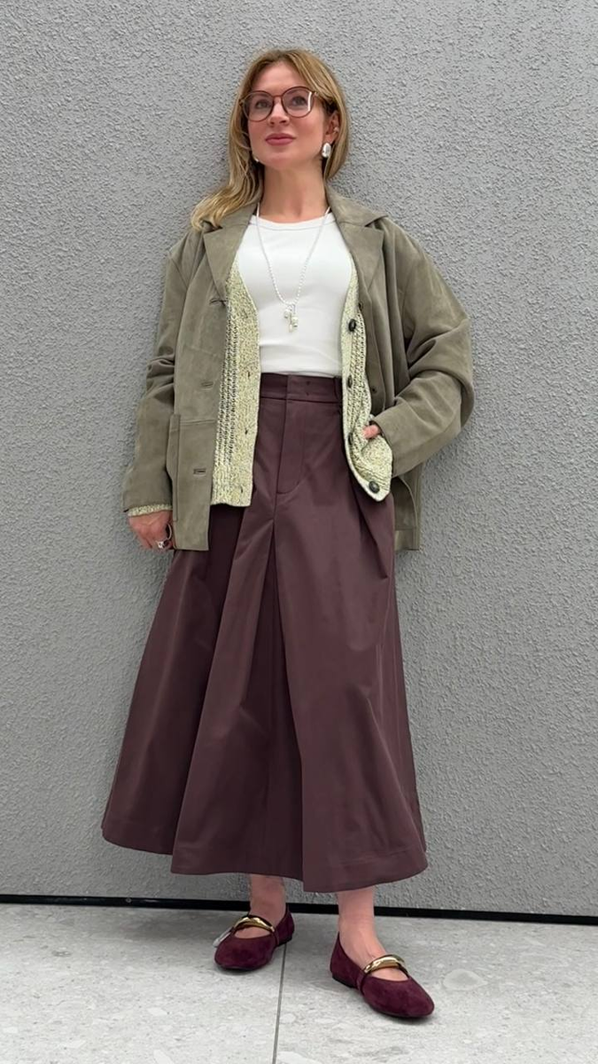 Основа — цветовое сочетание осени. Сентябрь, пожалуй, тот месяц, когда уместную яркость и причудливость лета ещё рано отпускать. Тем более температура, пусть и скачущая, позволяет не утяжелять верх. По этому случаю, решилась на очередной модный эксперимент. Вновь пройдясь по магазинам, зашла и в Lime. Первый взгляд на манекен — брюки... которые оказались юбкой. За счёт глубокой складки эта "вещь-обманка" смотрится необычно, в модной эстетике Grandmacore («бабушкин стиль») Остаётся усилить её другими стильными вещами в желаемой истории. Это модное направление интересно своим уютом и причудливостью. Но чтобы ретро эстетика не сильно взрослила, нужно соблюдать некие стильные правила. Сейчас разберёмся.