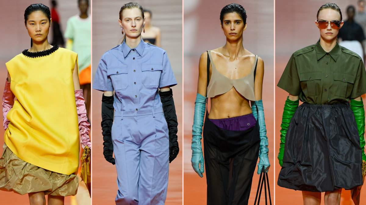 Миучча Прада и Раф Симонс задумались над функцией и назначением одежды, создав коллекцию, наводящую на размышления. "Пытаемся создать новый вид элегантности", - сказала Миучча Прада после показа Prada. Она и Раф Симонс открыли свой показ униформой, сочетая военные рубашки с коротким рукавом и брюки с перчатками длиной до локтя и туфлями на шпильках с блёстками. Вечер в опере? Или ночная смена в качестве охранника? Функциональные топы, которыми пестрят миланские подиумы, были сведены к развевающимся клочьям шифона, а юбки - к прозрачным трубам, которые держались на пленочных подтяжках. Отлично для фотографий и социальных сетей, но... Специально для этого она и Симонс, ее креативный директор, даже, кажется, задались вопросом, должна ли одежда нравиться во всех случаях. В данном случае это не так, но миксапы удерживали ваше внимание, когда знакомые архетипы стилизовались или превращались в нечто новое. Рубашки-поло с эмблемами на груди были увеличены в размерах и прев