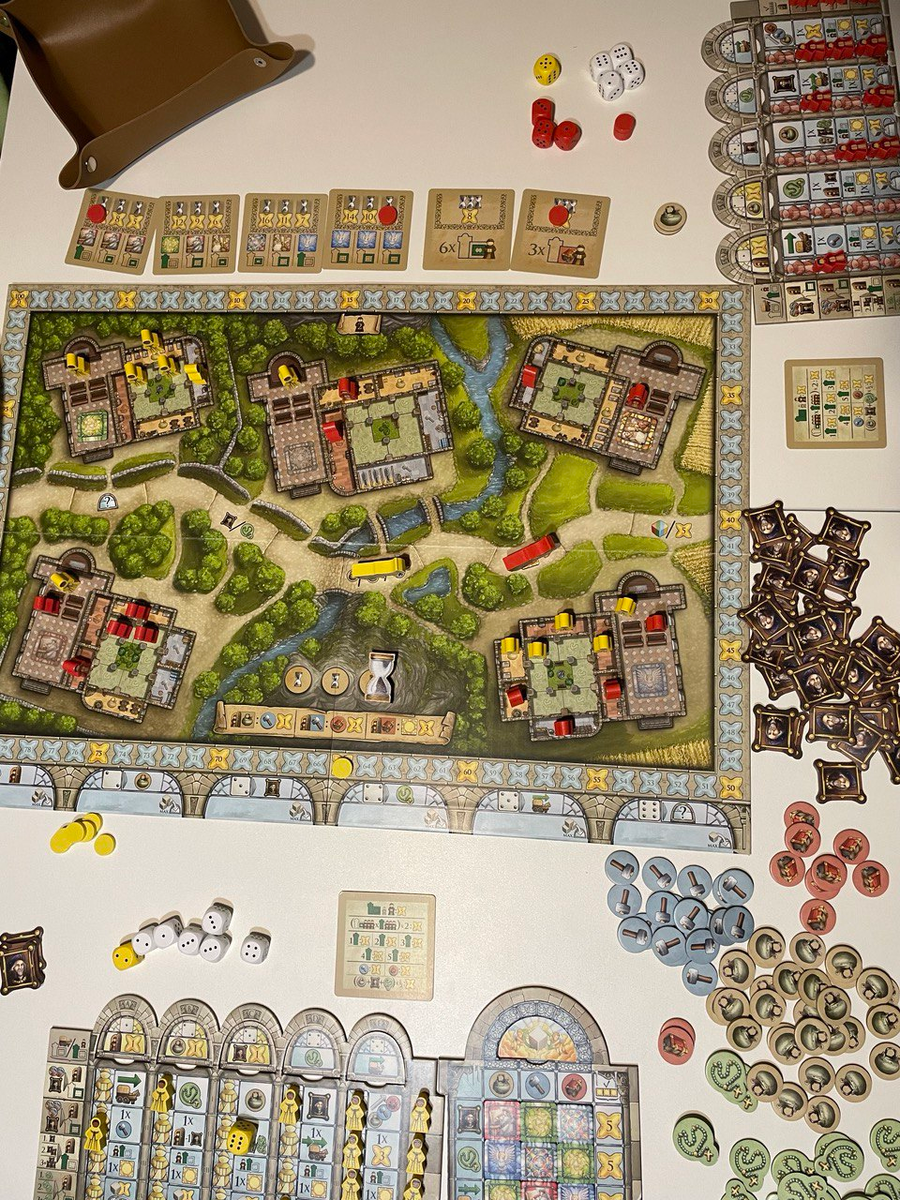 Здесь прикольный рондель с действиями. А больше даже сказать нечего. Поинт-салатное евро без каких-то явных новшеств. Но всё работает очень хорошо и слаженно. Всего много, всё взаимосвязано, есть мажорити, победные очки приятно сыпятся. Ещё и оформлено красиво и интересно. Очень понравилось.
