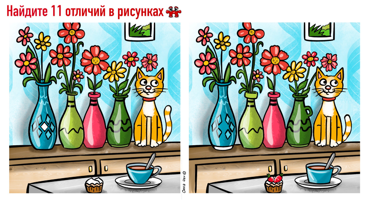 11 отличий спрятались на картинках. Сможете найти? Разминка для мозга, позитив для настроения.