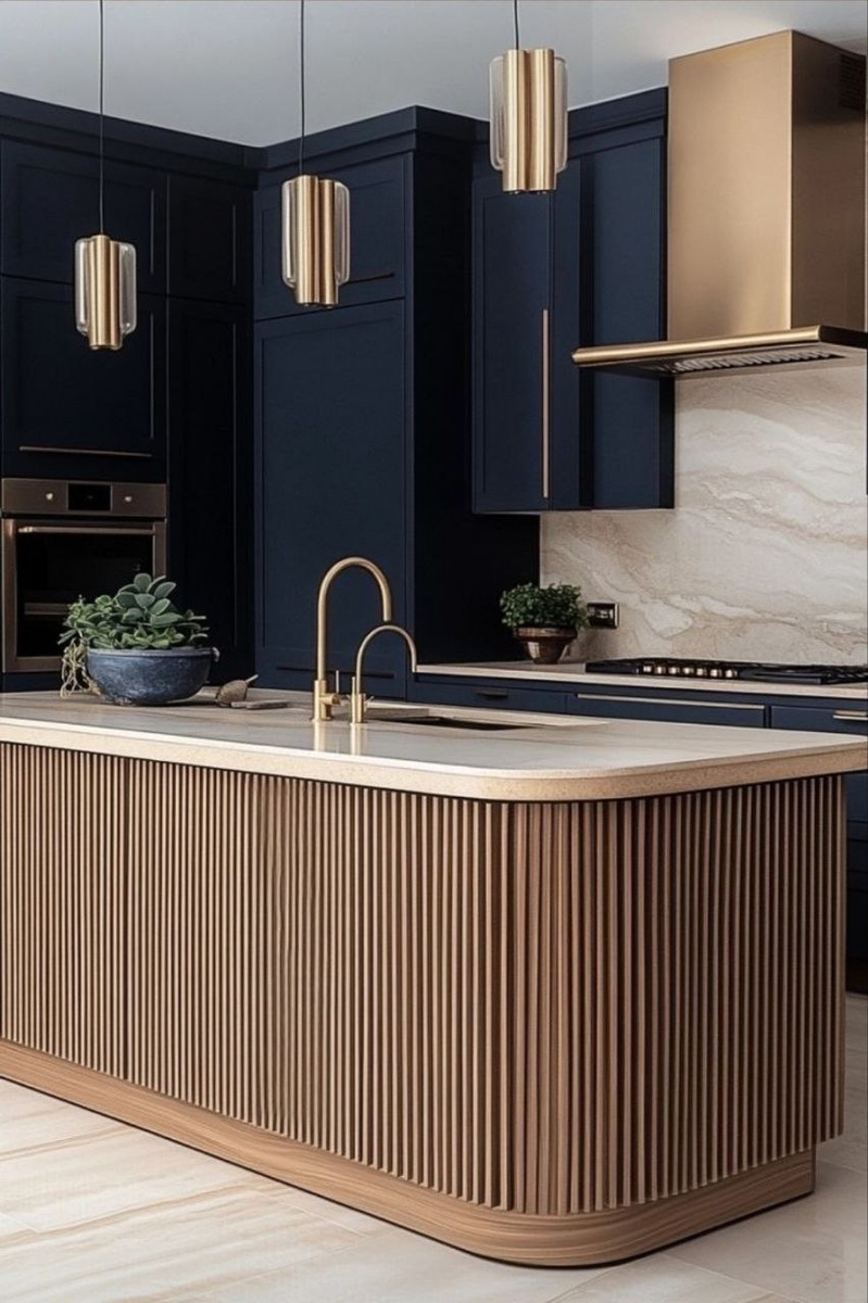 С вас лайк ❤️ и подписывайтесь на мой канал. 💙Синий цвет в интерьере символизирует спокойствие, безопасность и гармонию, ассоциируясь с небом и морем, что способствует расслаблению и умиротворению. 🌌А тёмно-синий - стабильность, надежность, глубину, интеллект, мудрость и силу. Он создает атмосферу спокойствия, доверия и безопасности, ассоциируется с изысканностью, элегантностью и авторитетом, а также способствует ясности ума и концентрации. ⚜️В КУХНЕ Гарнитур насыщенного синего цвета в матовом исполнении выглядит дорого и современно. В паре с белой или чёрное мраморной столешницей и латунной фурнитурой — классика, которая не выйдет из моды. А если добавить дерево, получится уютная атмосфера. ⚜️В ГОСТИНОЙ Глубокий тёмно-синий цвет можно использовать как акцентную стену или в мебели: диван, кресла, ковёр. Он создаёт фон для картин, зеркал и светлых деталей. Отличные компаньоны: беж, пыльно-розовый, горчичный, золото. ⚜️В СПАЛЬНЕ Синие стены делают атмосферу камерной, помогают рассла