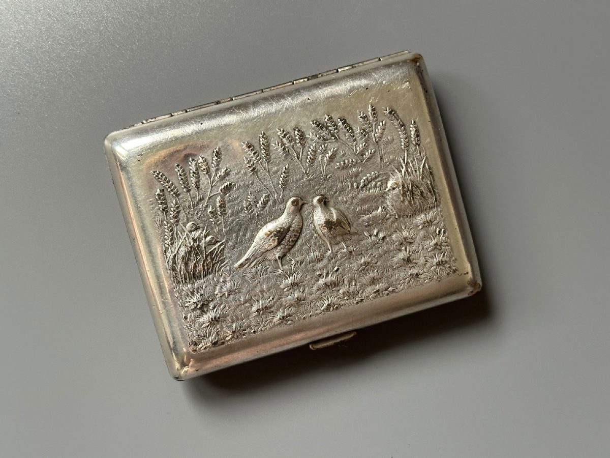 Приветствую, дорогие друзья! 💐 Как-то совсем не складываются у меня отношения со статьями на Дзене. В голове так много мыслей, а вот собрать их воедино и найти на это время, задача пока не из простых. Постоянно всё откладываю. Вот пишу в ночи, чтобы возможно с утра вы увидели плоды моих стараний. 😁 Продолжаю разбирать вещи, правда, делаю это со скоростью улитки. 🐌 Серьёзно, дух авантюризма и жажда наживы потихоньку меня покидают! 🤣 Ещё позавчера я устроила фотосессию вещей от бабушки и кое-чего из своих запасов. Но на улице было хмуро и пасмурно, а нормальный свет был только на кухне. Расстелила фотофон на диване под окном (у меня на кухне стоит диван, размеры позволяют), и через 10 минут моя спина сказала мне «досвидания» 🙋♀️ С горем пополам я отсняла всего 11 лотов. Диван низкий, и корячиться дольше у меня просто не хватило сил. 😁 Теперь вот настал час поделиться новыми лотами для Авито. Достался мне вот такой советский портсигар. Красивый, необычный. Но клейма на нём н